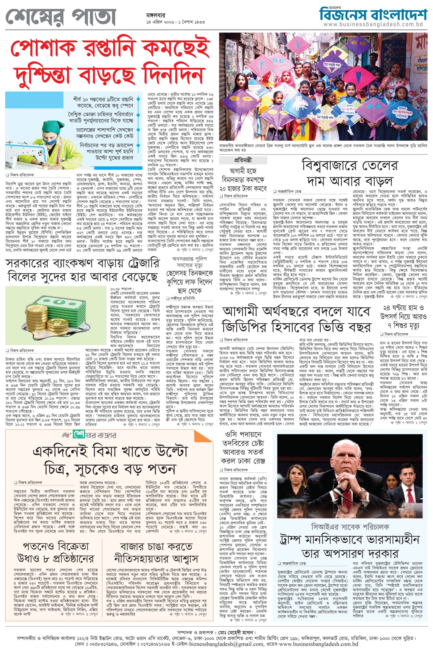 মঙ্গলবার, ১৪ এপ্রিল ২০২৬, ১ বৈশাখ ১৪৩৩, ২৬শে শাওয়াল, ১৪৪৭ হিজরি